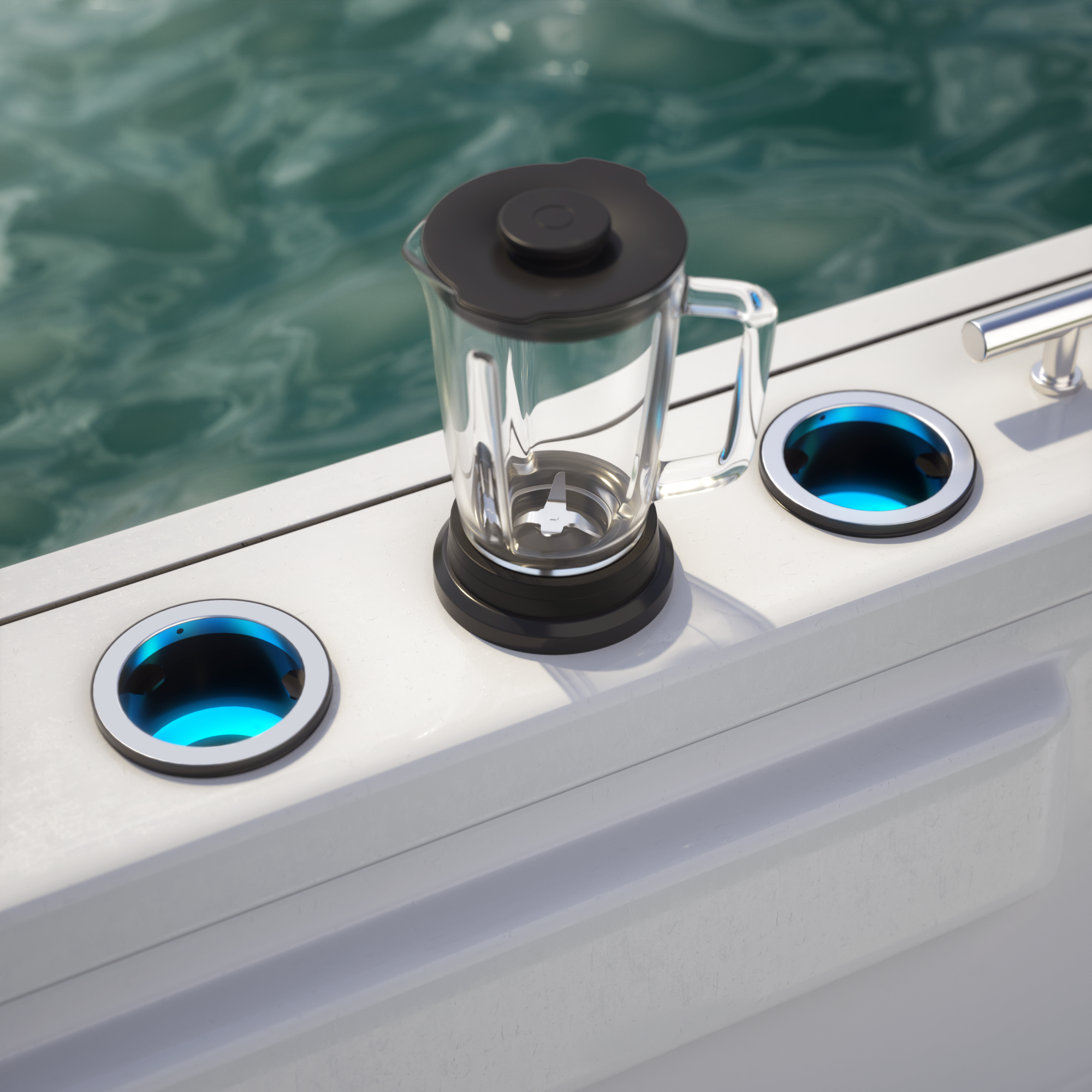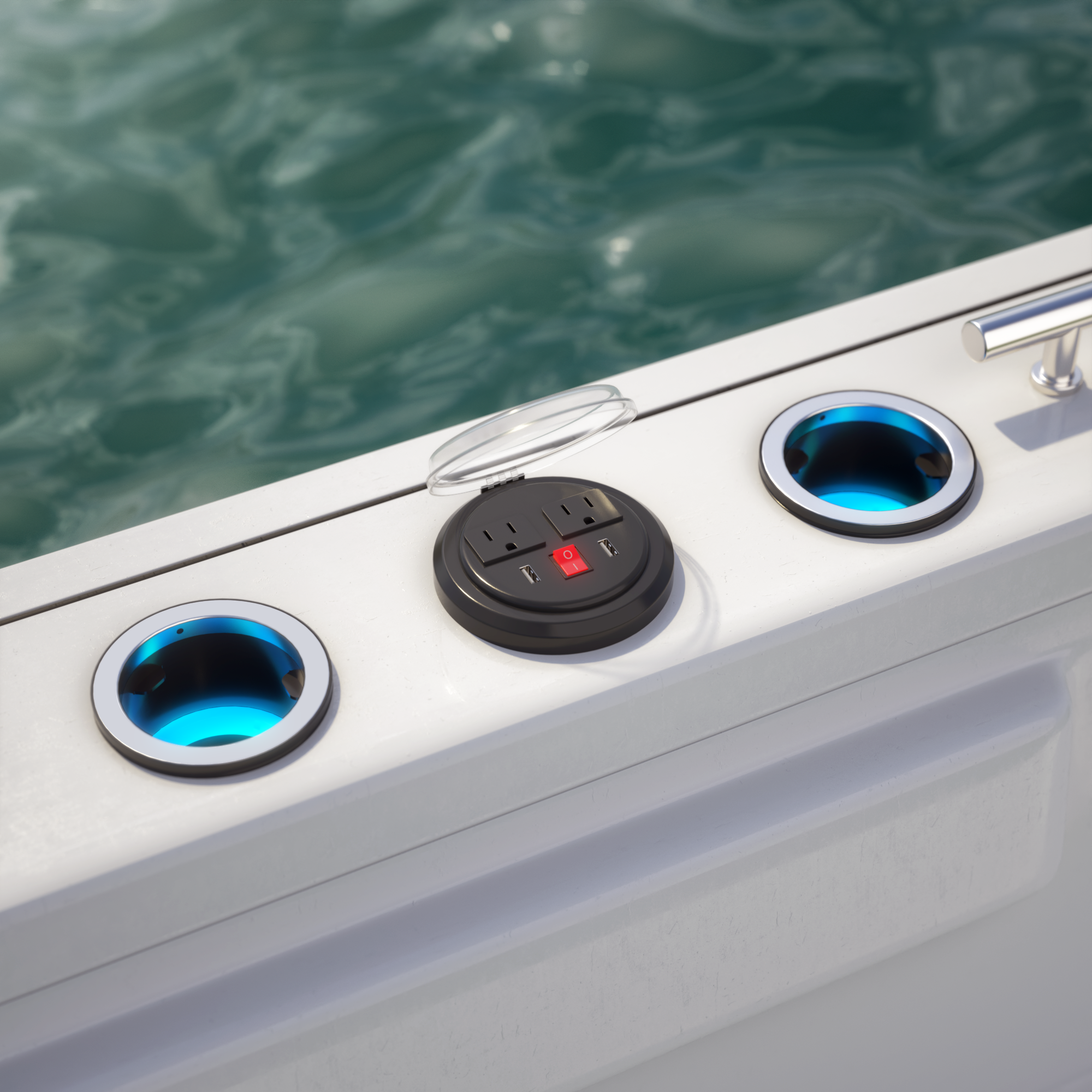 Using wireless authentication and smart leads, SeaSocket only becomes a live outlet the moment an authorized accessory is plugged in. Until then, its just a great cup holder. Metal cup? Spilt beer? No problem.