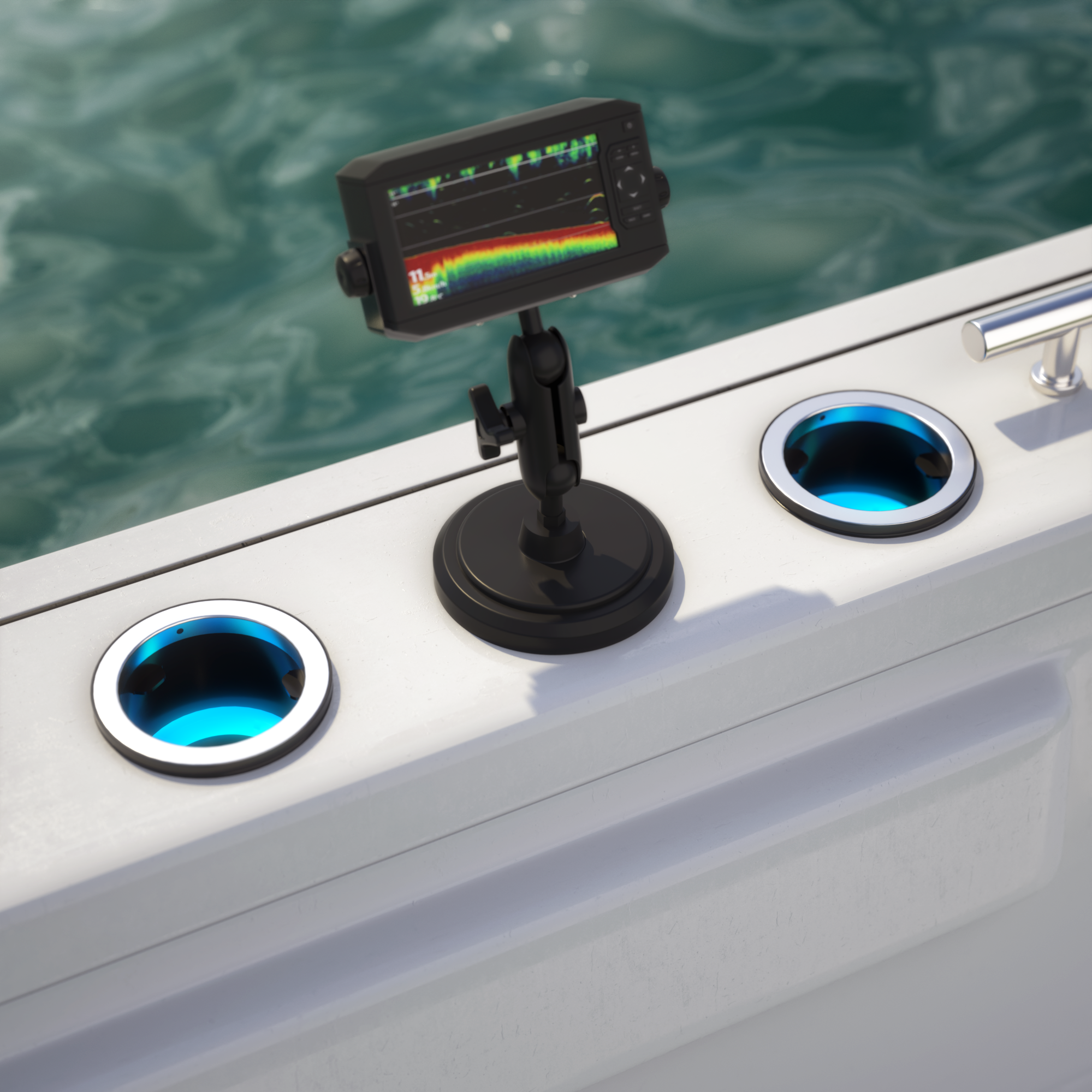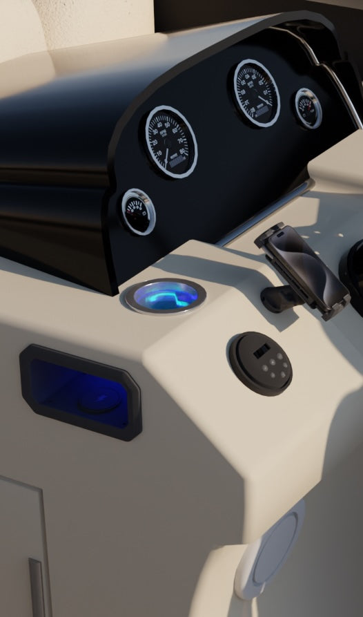 A phone charger at the helm? A personal fan by the bow seats? A fish finder on the tuna tower? With SeaSocket, you can have it all. Just take a compatible accessory with you and stick it in any SeaSocket cup holder to power it up. Finally, customers can configure their vehicle on the go, without drilling any holes or permanently mounting any equipment.