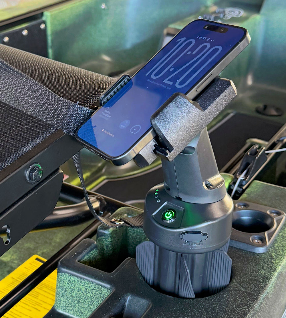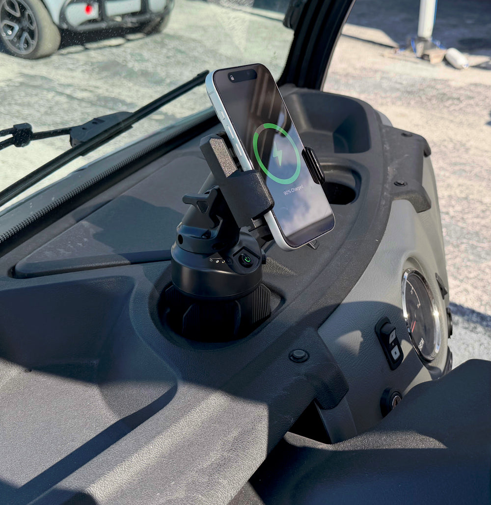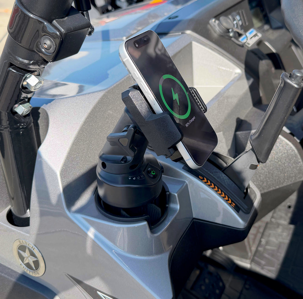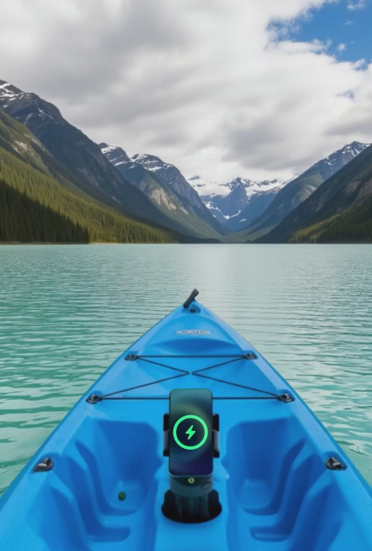 Waterproof Power Bank + Fast Wireless Phone Charger + Rugged Cup Holder Mount.